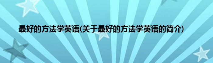 本文关于最好的方法学英语的简介就讲解完毕,希望对大家有所帮助。