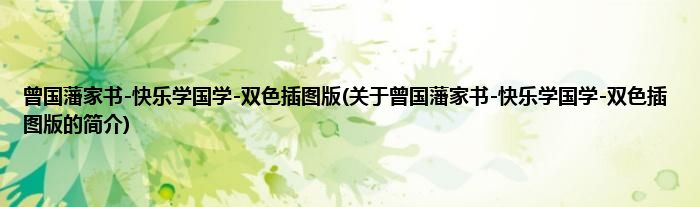 本文关于曾国藩家书-快乐学国学-双色插图版的简介就讲解完毕,希望对大家有所帮助。