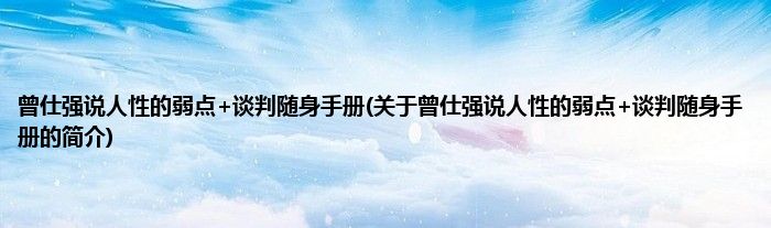 本文关于曾仕强说人性的弱点+谈判随身手册的简介就讲解完毕,希望对大家有所帮助。