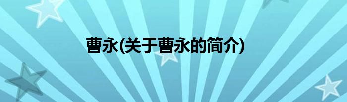本文关于曹永的简介就讲解完毕,希望对大家有所帮助。