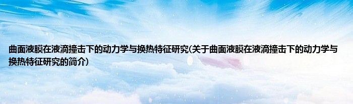 本文关于曲面液膜在液滴撞击下的动力学与换热特征研究的简介就讲解完毕,希望对大家有所帮助。