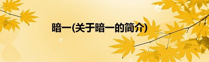 大家好,暗一,关于暗一的简介很多人还不知道,现在让我们一起来看看吧!