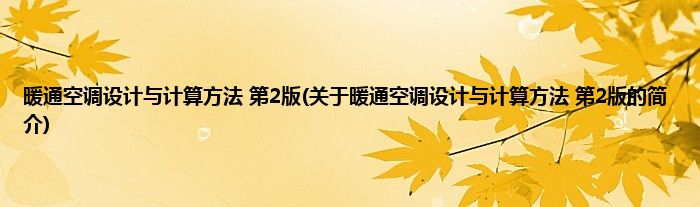 本文关于暖通空调设计与计算方法 第2版的简介就讲解完毕,希望对大家有所帮助。