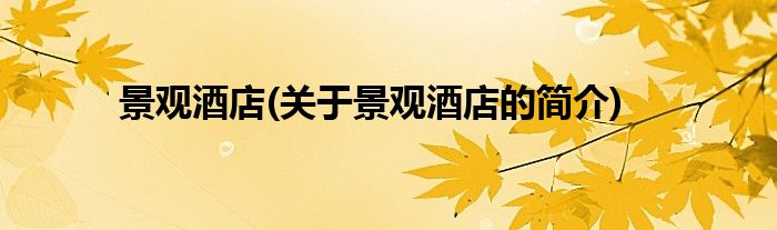 本文关于景观酒店的简介就讲解完毕,希望对大家有所帮助。