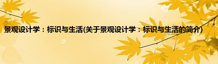 本文关于景观设计学:标识与生活的简介就讲解完毕,希望对大家有所帮助。