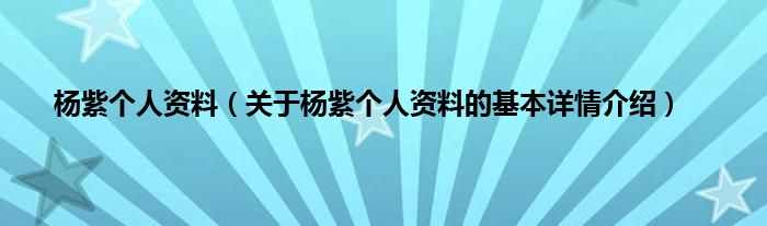 本文关于杨紫个人资料的基本详情介绍就讲解完毕,希望对大家有所帮助。