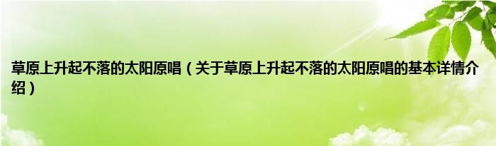 本文关于草原上升起不落的太阳原唱的基本详情介绍就讲解完毕,希望对大家有所帮助。
