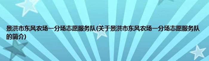 景洪市东风农场一分场志愿服务队(关于景洪市东风农场一分场志愿服务队的简介)