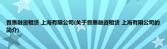 本文关于普惠融资租赁 上海有限公司的简介就讲解完毕,希望对大家有所帮助。