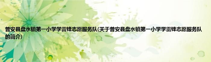 本文关于普安县盘水镇第一小学学雷锋志愿服务队的简介就讲解完毕,希望对大家有所帮助。