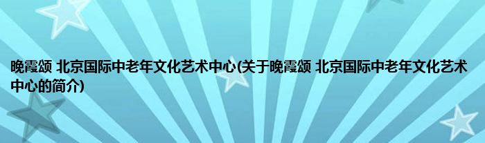 大家好,晚霞颂 北京国际中老年文化艺术中心,关于晚霞颂 北京国际中老年文化艺术中心的简介很多人还不知道,现在让我们一起来看看吧!