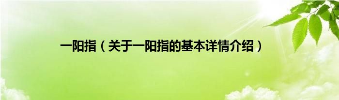 本文关于一阳指的基本详情介绍就讲解完毕,希望对大家有所帮助。
