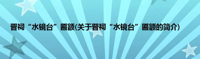 本文关于晋祠“水镜台”匾额的简介就讲解完毕,希望对大家有所帮助。