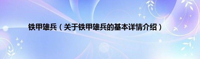 本文关于铁甲雄兵的基本详情介绍就讲解完毕,希望对大家有所帮助。