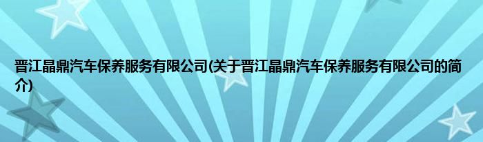 本文关于晋江晶鼎汽车保养服务有限公司的简介就讲解完毕,希望对大家有所帮助。