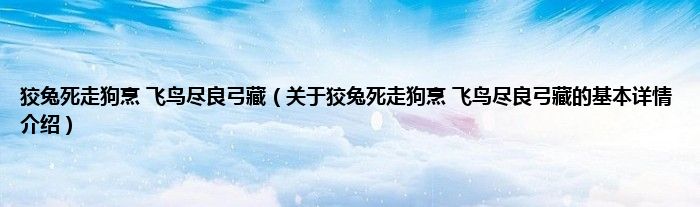 本文关于狡兔死走狗烹 飞鸟尽良弓藏的基本详情介绍就讲解完毕,希望对大家有所帮助。