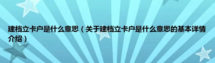 本文关于建档立卡户是什么意思的基本详情介绍就讲解完毕,希望对大家有所帮助。