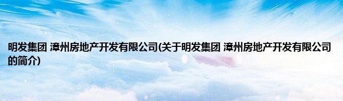 1、 明发集团(漳州)房地产开发有限公司于2007年02月13日在福建省漳州市工商行政管理局登记成立。