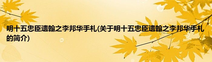本文关于明十五忠臣遗翰之李邦华手札的简介就讲解完毕,希望对大家有所帮助。