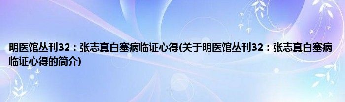 本文关于明医馆丛刊32:张志真白塞病临证心得的简介就讲解完毕,希望对大家有所帮助。