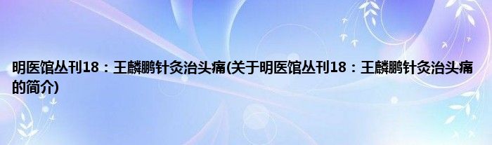 本文关于明医馆丛刊18:王麟鹏针灸治头痛的简介就讲解完毕,希望对大家有所帮助。