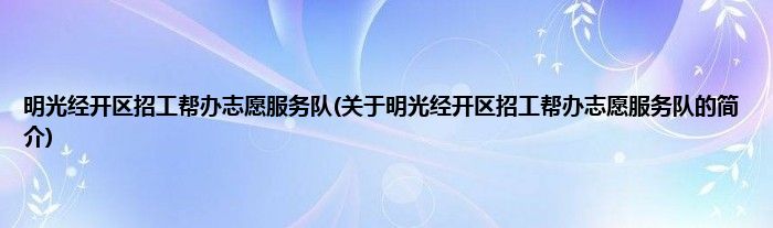 本文关于明光经开区招工帮办志愿服务队的简介就讲解完毕,希望对大家有所帮助。