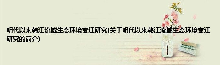 大家好,明代以来韩江流域生态环境变迁研究,关于明代以来韩江流域生态环境变迁研究的简介很多人还不知道,现在让我们一起来看看吧!