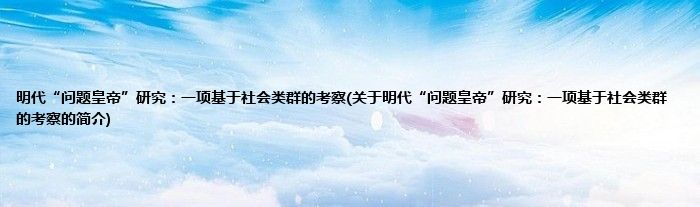 本文关于明代“问题皇帝”研究:一项基于社会类群的考察的简介就讲解完毕,希望对大家有所帮助。