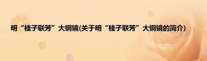 本文关于明“桂子联芳”大铜镜的简介就讲解完毕,希望对大家有所帮助。