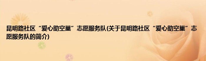 本文关于昆明路社区“爱心助空巢”志愿服务队的简介就讲解完毕,希望对大家有所帮助。