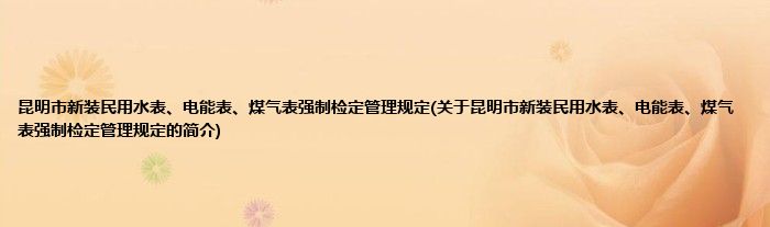 大家好,昆明市新装民用水表、电能表、煤气表强制检定管理规定,关于昆明市新装民用水表、电能表、煤气表强制检定管理规定的简介很多人还不知道,现在让我们一起来看看吧!