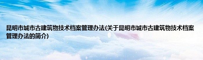 大家好,昆明市城市古建筑物技术档案管理办法,关于昆明市城市古建筑物技术档案管理办法的简介很多人还不知道,现在让我们一起来看看吧!