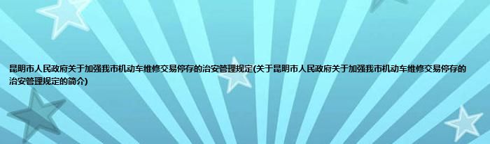 本文关于昆明市人民政府关于加强我市机动车维修交易停存的治安管理规定的简介就讲解完毕,希望对大家有所帮助。