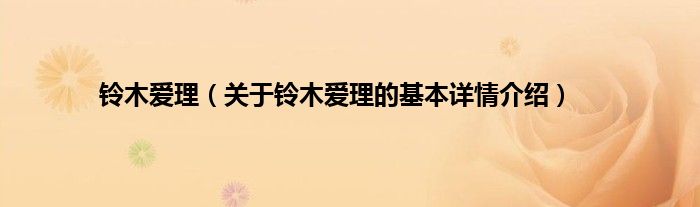 本文关于铃木爱理的基本详情介绍就讲解完毕,希望对大家有所帮助。