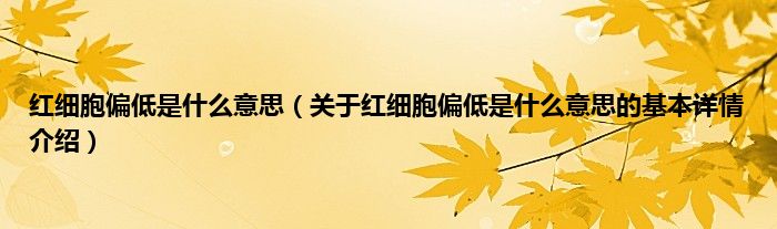 本文关于红细胞偏低是什么意思的基本详情介绍就讲解完毕,希望对大家有所帮助。
