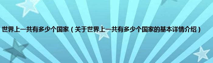 本文关于世界上一共有多少个国家的基本详情介绍就讲解完毕,希望对大家有所帮助。