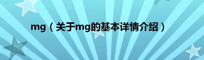 本文关于mg的基本详情介绍就讲解完毕,希望对大家有所帮助。