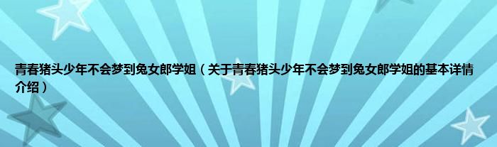 本文关于青春猪头少年不会梦到兔女郎学姐的基本详情介绍就讲解完毕,希望对大家有所帮助。