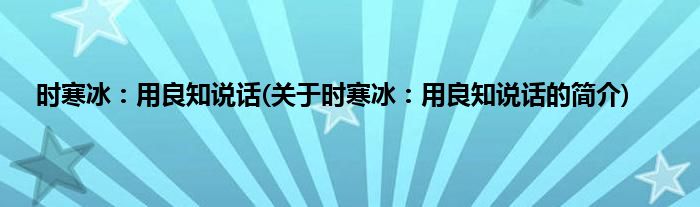本文关于时寒冰:用良知说话的简介就讲解完毕,希望对大家有所帮助。