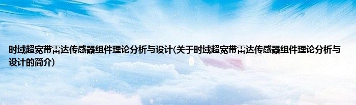 1、 《时域超宽带雷达传感器组件理论分析与设计》是2017年国防工业出版社出版的图书。