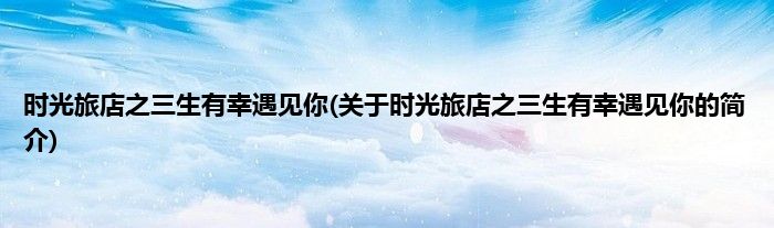 大家好,时光旅店之三生有幸遇见你,关于时光旅店之三生有幸遇见你的简介很多人还不知道,现在让我们一起来看看吧!
