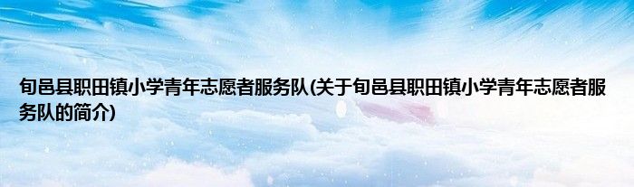 1、 旬邑县职田镇小学青年志愿者服务队是由旬邑县志愿者协会领导下的志愿团体。