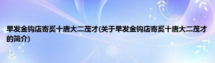 本文关于早发金钩店寄奚十唐大二茂才的简介就讲解完毕,希望对大家有所帮助。