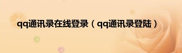 大家好,精选小编来为大家解答以上问题。qq通讯录在线登录,qq通讯录登陆很多人还不知道,现在让我们一起来看看吧!