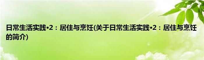 大家好,日常生活实践·2:居住与烹饪,关于日常生活实践·2:居住与烹饪的简介很多人还不知道,现在让我们一起来看看吧!