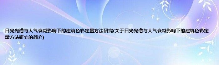 日光光谱与大气衰减影响下的建筑色彩定量方法研究(关于日光光谱与大气衰减影响下的建筑色彩定量方法研究的简介)