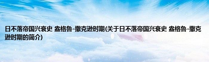 最佳答案大家好,日不落帝国兴衰史 盎格鲁-撒克逊时期,关于日不落帝国兴衰史 盎格鲁-撒克逊时期的简介很多人还不知道,现在让我们一起来看看吧! 1、 《日不落帝国兴衰史(盎格鲁-撒克逊时期)》是外语教学与研究出版社出版的图书。2、作者是[英]约翰·布莱尔。本文关于日不落帝国兴衰史 盎格鲁-撒克逊时期...
