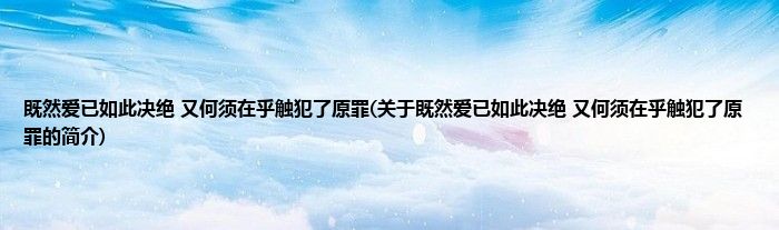 本文关于既然爱已如此决绝,又何须在乎触犯了原罪的简介就讲解完毕,希望对大家有所帮助。