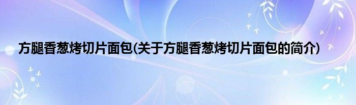 大家好,方腿香葱烤切片面包,关于方腿香葱烤切片面包的简介很多人还不知道,现在让我们一起来看看吧!