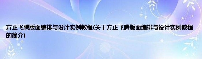 本文关于方正飞腾版面编排与设计实例教程的简介就讲解完毕,希望对大家有所帮助。